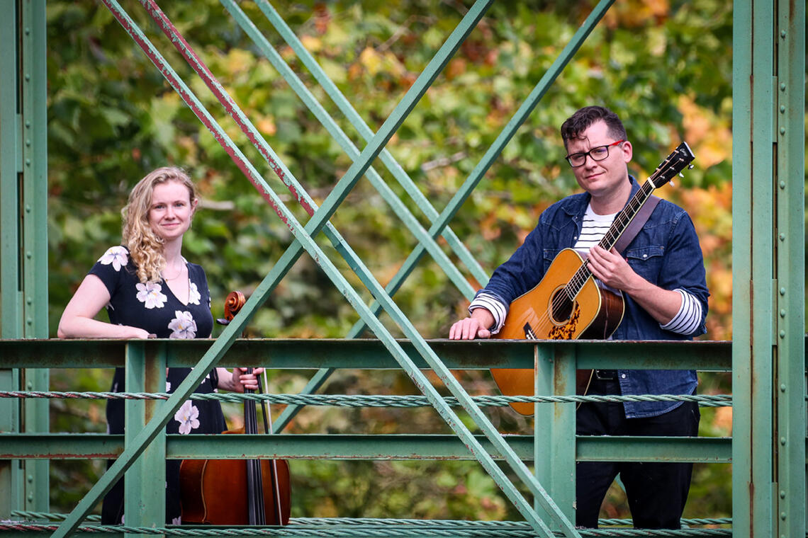 The Nightjars bring a fresh spark to American string-band music, honoring old-time roots while joyfully wandering past the expected. This cello–guitar duo met by happy accident at a late-night jam during the 2024 Baltimore Old-Time Festival, and the musical chemistry was instant.Cellist Ellen Gira, shaped by years in both the D.C. and Glasgow scenes, adds her signature rhythmic “chop” and a fearless curiosity that moves through Scottish, Irish, Scandinavian, American, and Canadian styles with ease. Guitarist Gabriel Furtado, a classical-to-bluegrass crossover, supplies the pulse—front-of-the-beat drive, subtle color, and a rhythmic pocket that could launch a thousand square dances.This duo builds soundscapes you can tap along to or tumble headlong into—intricate cello lines, luminous harmonies, gentle guitar textures, and the kind of rhythmic energy that lifts a room. Their delight in playing together is unmistakable, whether caught onstage or in the studio.